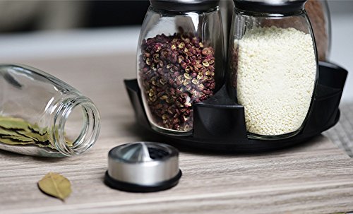 Babypros Revolving Countertop Herb and Spice Rack with 6 Glass Seasoning Airtight Jar Container Bottles with Stainless Steel Lids with Rotating Base