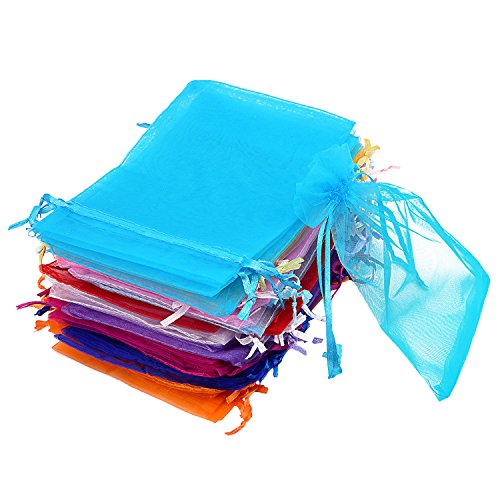 Livvd 100 Pack 5 x 7 Inch Drawstring Organza Gift Bags Jewelry Pouches for Wedding Party Favor (Multicolor)