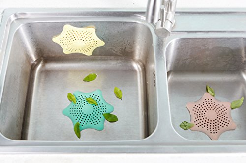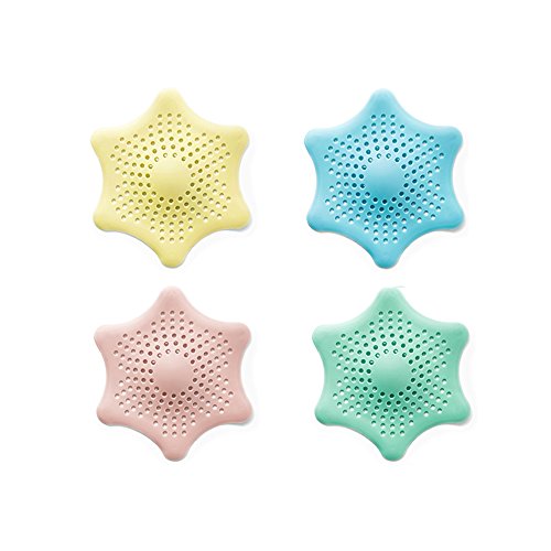 Eunion Shower Drain Hair Catcher Hair Stopper, Hexagonal Starfish Shaped Rubber Strainer-4 Pack in Assorted Colors