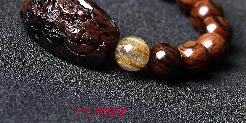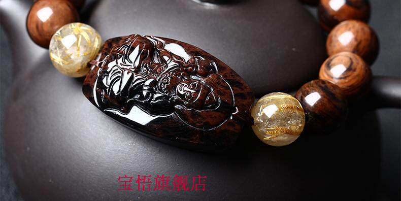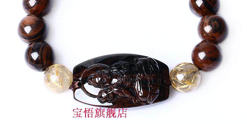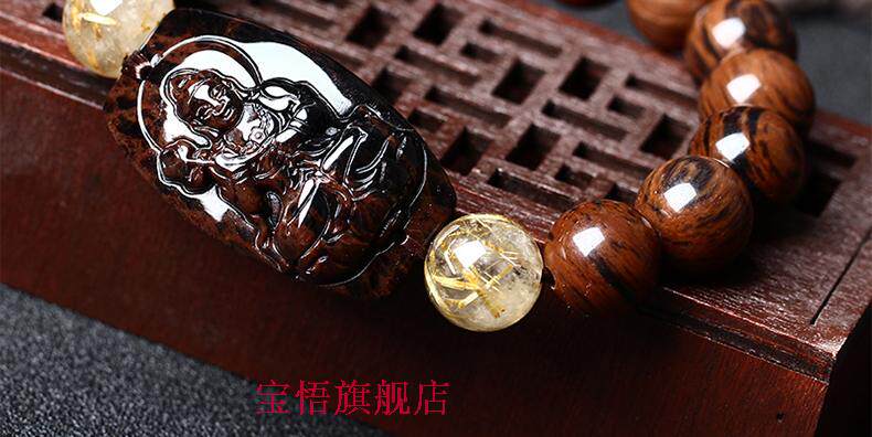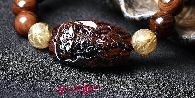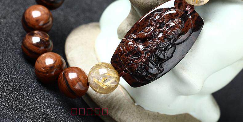 开光天然红竹石金丝红曜石大势至菩萨生肖属马本命佛守护神手链