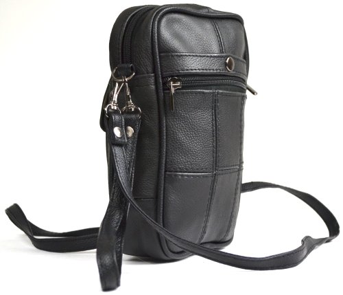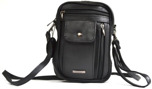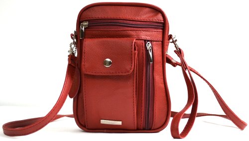 Product Description Unisex Genuine Leather Cross Body Bag with Multiple Zipped Pockets and Glasses / Mobile Phone Pocket (Tan, Red or Black). Approx sizing. Length: 14cm, Width: 4cm, Height: 20cm. Adjustable Removable Shoulder Strap 120cm. Fully Lined (incl all pockets) with Material to Match Bag Colour. 1 Main Top Zipped Compartment. 2 Front Zipped Pockets. 1 Zipped Back Pocket and 1 Pop Button Back Pocket. Mobile Phone or Glasses Pouch with Button Clasp. 0