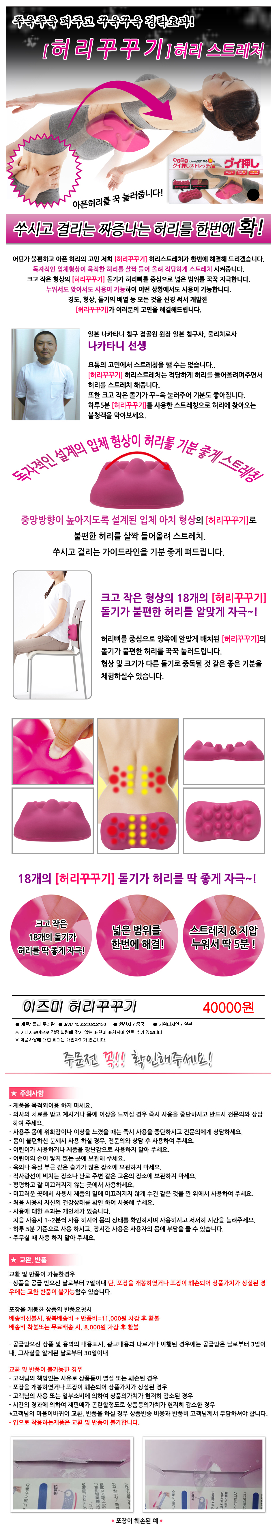 - 품명 및 모델명 허리꾸꾸기 허리지압허리마사지허리뭉침허리받침대허리안마