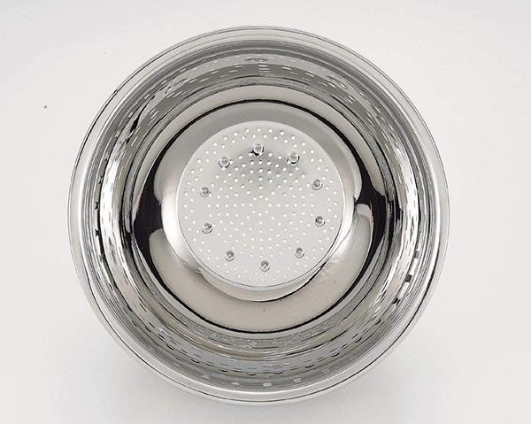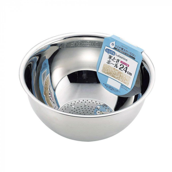 fk094igrjs流水でお米を洗っても底面に穴が開いているので、溢れる心配がありません サイズ (約)外径260×高さ125mm 個装サイズ:26×26×13cm 重量 個装重量:360g 素材・材質 ステンレス鋼 製造国 インド ステンレス製の米とぎ用ボール 流水でお米を洗っても底面に穴が開いているので、溢れる心配がありません