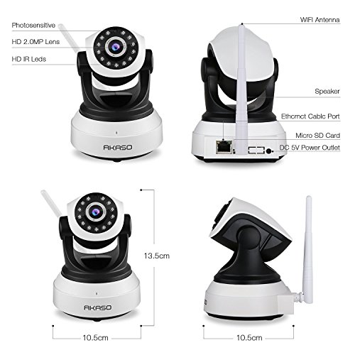 AKASO IP1M-903 Wireless 720P IP camera Wifi Security Home Monitoring CCTV Surveillance Network Webcam Pan/Tilt Video Surveillance 2 way Audio SD Card Slot Night Vision