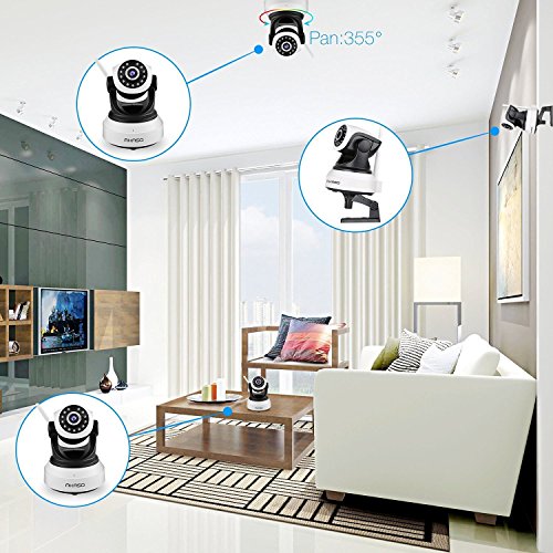 Pan/Tilt: Horizontal angle 355 degree and 90 vertical degree monitor every corner under home surveillance wifi camera; Move the Security IP camera as you wished, so the dark place at your home is no longer the place you worry about.