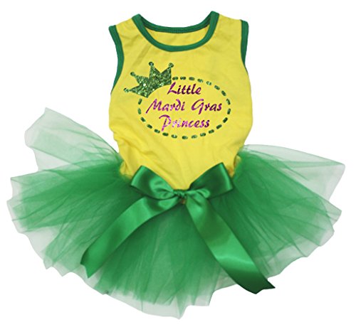 -. Title : Petitebella Puppy Cloth Dog Dress Mardi Gras Princess Yellow Shirt Green Tutu