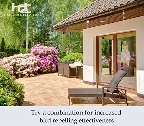 - HIGHLY EFFECTIVE – Produces the ultimate bird deterrent combination by refracting light, emitting sound, and unpredicting motion to scare, confuse, and prohibit birds from adapting to the surrounding environment. A disc,tape, and decal alternative.*Note - For best results, please use with direct sunlight and a breeze.