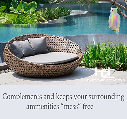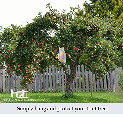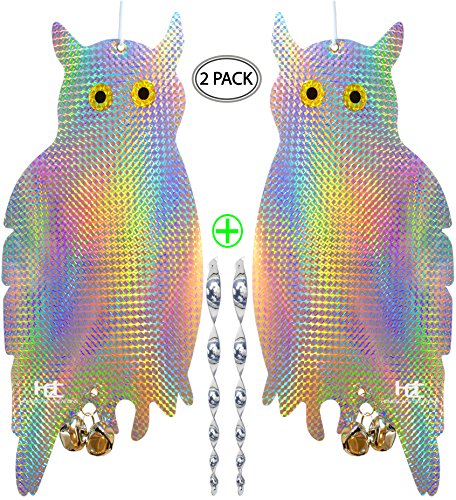 Owl Bird Scare Repellent Device by Homescape Creations - Holographic Reflective Woodpecker Deterrent With 12 inch Spiral Scare Rods & 2 Bonus Suction Cups / 2 Pack Combo