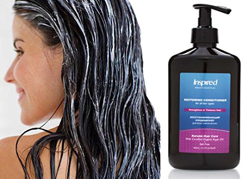 -. Title : Inspired Professional Restoring Conditioner Keratin Luxurious Hair Care Moroccan Organic Argan Oil Salt SLS Free Volume Thickening Salon Quality Instantly Repairs Damaged Dry Hair 400ml / 13.5fl.oz