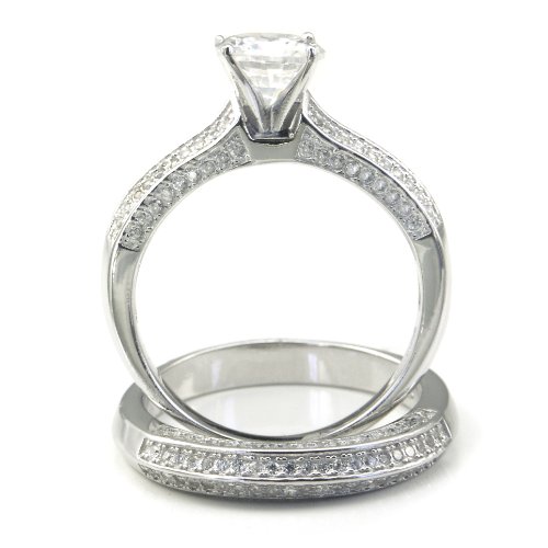 - Title : Sterling Silver Cubic Zirconia 1.8 Carat tw Round Cut CZ Pave Wedding Engagement Ring Set