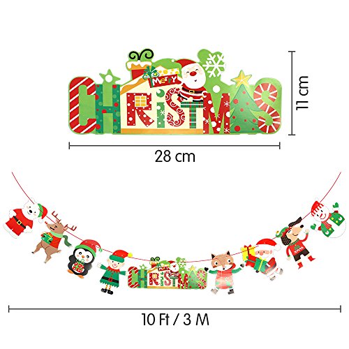 Christmas Banners, FLY2SKY Banners Garlands for Holiday Party Decoration 10 Ft Christmas Hanging Bunting Decorations Christmas Banners String for Christmas