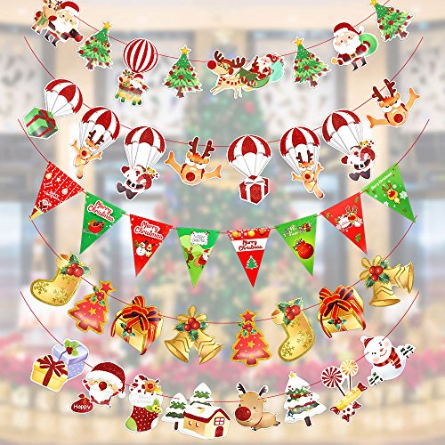 - SIZE -- 10 ft/3 meters long christmas hanging bunting decortion provide you adjustable length, and more condition to hang them indoor or outdoor.