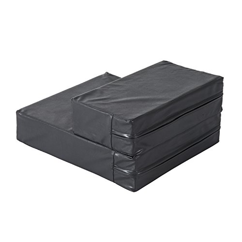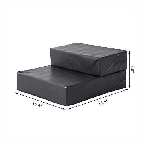 -. Binding : Misc. -. Brand : Pawhut -. Feature : Help smaller, aging or ailing dogs get a leg up with folding steps that allow them to reach high up places such as furniture with ease / Folds out flat to become a convenient place for your pets to sleep and relax on / Made from a dense foam material and wrapped in an outer layer of comfortable leather to offer solid support while remaining lightweight / Covers are removable and can be wiped down for easy cleaning / Overall Mat Dimensions: 26.4"L × 15.4"W × 3.9"H / Overall Stair Dimensions: 16.5"L × 15.4"W × 7.9"H -. Label : Aosom Direct -. Manufacturer : Aosom Direct -. Model : D06-009BK-Parent -. MPN : D06-009BK-Parent -. PackageQuantity : 1 -. PartNumber : D06-009BK-Parent -. ProductGroup : Pet Products -. ProductTypeName : PET_SUPPLIES -. Publisher : Aosom Direct -. Studio : Aosom Direct -. Title : Pawhut 2-Step Leather Folding Pet Stairs