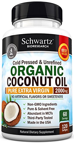 -. Feature : 100% SATISFACTION GUARANTEED: Feel healthier or your money back - no questions asked! / ORGANIC COCONUT OIL - HIGHEST GRADE AVAILABLE: Freshly made from Cold-Pressed Organic Coconuts, our coconut oil supplement is 100% Pure, Extra Virgin, Unrefined & Gluten FREE, Non-GMO and Solvent FREE. The best coconut oil pills and coconut oil for skin in the market. / AMAZING BEAUTY & HEALTH BENEFITS INCLUDING WEIGHT LOSS: Studies show that coconut oil supports Healthy Weight Loss, Cardiovascular and Brain Health, Healthy Hair, Skin and Nails and Energy Levels. Helps with occasional constipation. / FORMULATED BY DOCTORS & MADE IN USA: For maximum potency and best results Schwartz Bioresearch coconut oil softgels (better than coconut oil capsules) are doctor-formulated and third party tested for highest purity and potency. Made in USA with compliance to cGMP standards. / UNREFINED COCONUT OIL RICH IN FATTY ACIDS AND MCT: Our organic coconut oil contains no trans-fats and is a rich source of Medium Chain Triglycerides (MCT oil occurs naturally in coconut oil), such as lauric acid and caprylic acid (higher than refined coconut oil or fractionated coconut oil).
