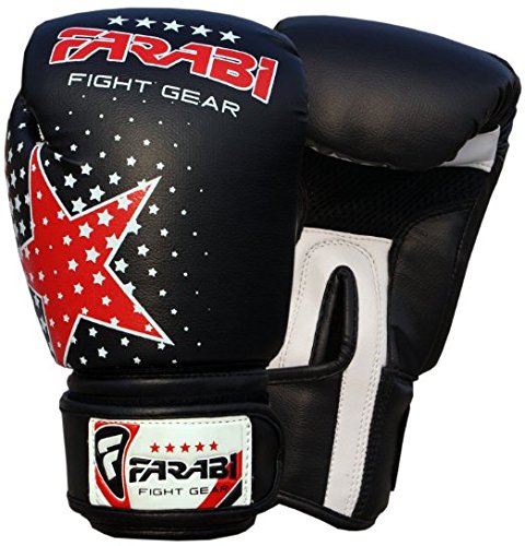 -. Feature : Farabi star boxing gloves 6Oz Black / Made of synthetic leather, grain style material. / Having breathable mesh palm,quick dry inner linning material and long lasting velcro strap. / Farabi star is recommended for 5-12 years old junior trainers / Available in six different colors
