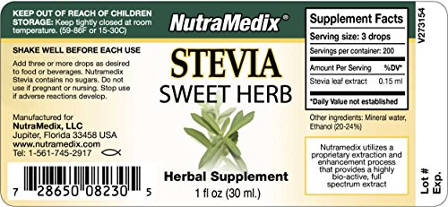 -. Binding : Health and Beauty -. Brand : Nutramedix -. Feature : A NO-SUGAR ALTERNATIVE - Stevia has attracted attention for its status as a convenient low-carbohydrate, no-sugar food alternative.* / FEEL THE DIFFERENCE - Add three or more drops as desired to food or beverages. Contains no sugars. Do not use if pregnant or nursing. Shake well before each use.* / FROM NATURE - Our products are sourced from natureâ€TMs richest botanical resources, P.R.Imarily Peru and the Amazon Rainforest.* / OVER 20 YEARS OF NUTRACEUTICAL INNOVATION - Founded in 1993, NutraMedix supplies highly bio-active nutritional supplements to health care professionals and consumers.* / THE BUSINESS OF GIVING BACK - A majority of NutraMedix profits are donated to charitable organizations. -. Label : NutraMedix -. Manufacturer : NutraMedix -. ProductGroup : Health and Beauty -. ProductTypeName : HEALTH_PERSONAL_CARE -. Publisher : NutraMedix -. Studio : NutraMedix -. Title : NutraMedix - Stevia