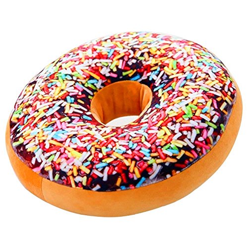 J-DEAL® Round Doughnut Donut Seat Back Stuffed Cushion Insert Filler Filling Throw Pillow Plush Play Toy Doll For Sleeping Office Afternoon Nap Doze Fruit Cake 16 X 16'' (Rainbow Icing Sugar)