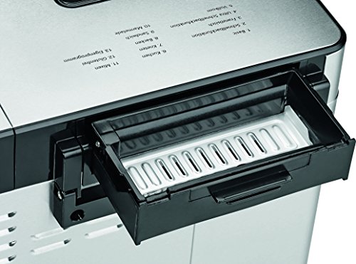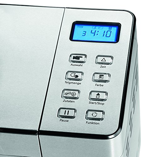 -. Feature : Vollkorn-Programm / Inhalt: ca. 2 Liter (entspricht bis zu 1000g Brot) / 13 Backprogramme / 43 Kombinationsmöglichkeiten / vollautomatische Teig- und Brotzubereitung (kneten, aufgehen, backen) / Zutatenspender fügt Nüsse, Körner und Früchte automatisch hinzu / elektronisches Bedienfeld mit LCD-Display (blau beleuchtet)