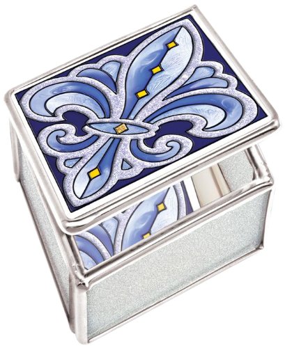 AMIA 41101 PETITE FLEUR-DE-LIS JEWELRY BOX, 2-1/2 BY 1-1/4 BY 3-INCH, BLUE AND SILVER
