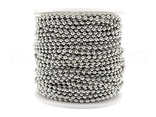 CleverDelights Ball Chain Roll - 30 Feet - Antique Silver (Platinum) Color - 2.4mm Ball - #3 Size 10 Yard