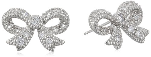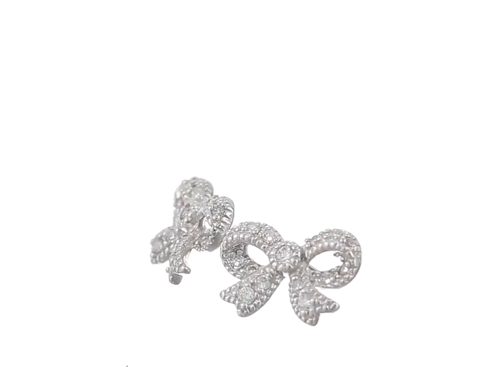 Rhodium-Plated Sterling Silver Cubic Zirconia Bow Stud Earrings (0.8 cttw)