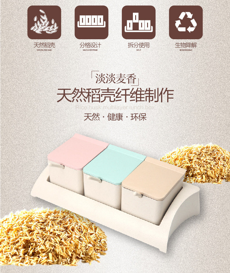 小麦纤维三格调味盒 调味罐瓶厨房用品佐料盒套装组合装