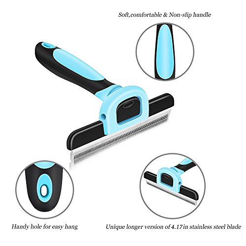Ergonomic and Easy to Use - Non-slip rubber handles that are ergonomically designed for a comfortable grip and ensuring a safe deshedding experience for you and your dog or cat. Simply comb gently over your dog's or cat's coat, within seconds you will have a fistful of fur and within minutes you will be amazed by the amount of loss hair has been removed.