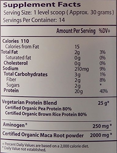 Paradise Maca Up vegetarian energy protein is a complete source of vegan, hypo-allergenic protein with a balanced amino acid profile derived from non-GMO organic brown rice and non-GMO organic pea. Pea protein is easily assimilated and has a sustained release transit time, which means it has excellent digestibility and keeps working. We have further enhanced our formula with the addition of the plant derived enzyme Aminogen. Paradise Maca Up also contains a great source of heart healthy Nutrim Organic Oat Bran fiber. Maca has been used for centuries by the people of Peru for its amazing energy and stamina qualities.**Feature