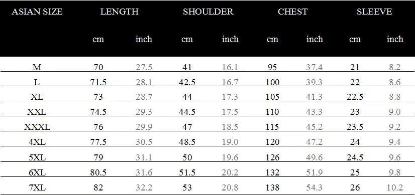 Size:M,L,XL,XXL,XXXL,4XL, 5XL, 6XL, 7XL