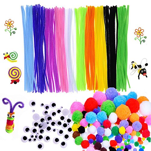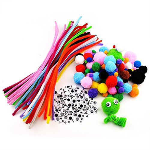 All in one Package - Package includes: 200 pompoms, 150 self-sticking wiggle eyes, 100 Pipe Cleaners chenille stems 6 mm x 12 Inch