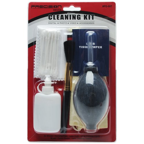 Precision Design 6-Piece Camera & Lens Cleaning Kit with Air Blower, Brush, Cleaning Solution, Microfiber Cloth, Lens Tissues & Cotton Swabs