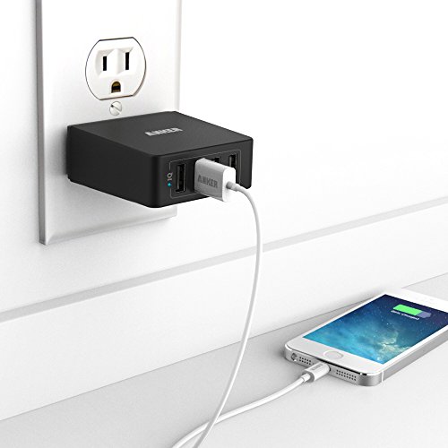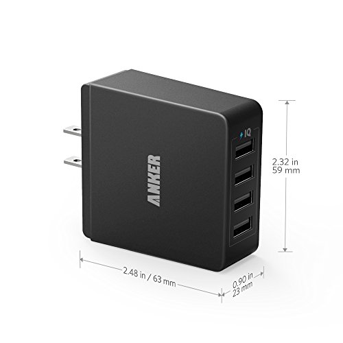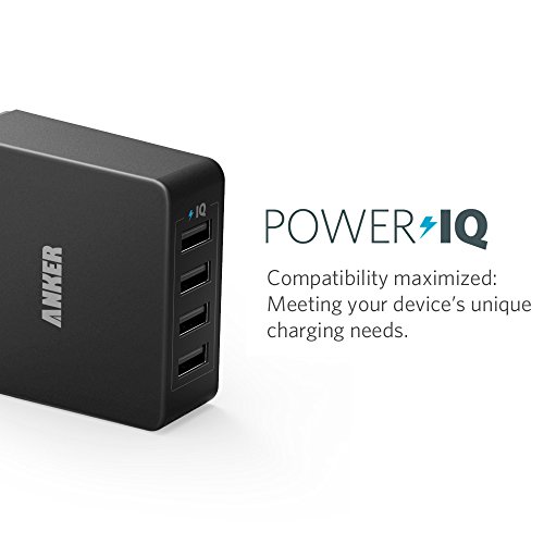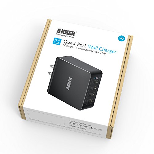 Anker 36W 4-Port USB Wall Charger Travel Adapter with PowerIQ Technology for iPhone 6s / 6 / 6 plus, iPad, Samsung Galaxy S6 / S6 Edge / Edge+, Note 5, Nexus, HTC M9, Motorola, LG and More (Black)
