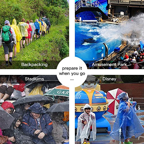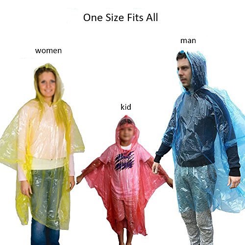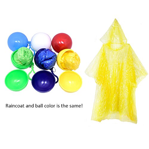 - 6 Colors: Each disposable rain poncho is individually package you get 6 ponchos in every pack. Raincoat and ball color is the same.It’s a wonderful gift for your friends,family,or colleague.
