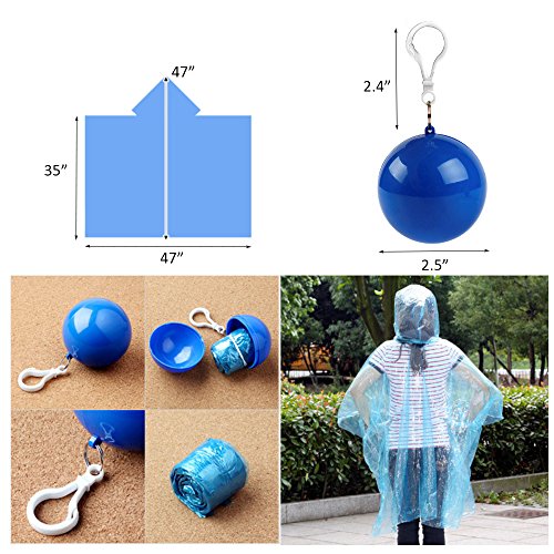 - Size: Raincoat: 47 x 35 inches,fits adults and children,one-time use.Portable raincoat ball diameter: 2.5 inches.