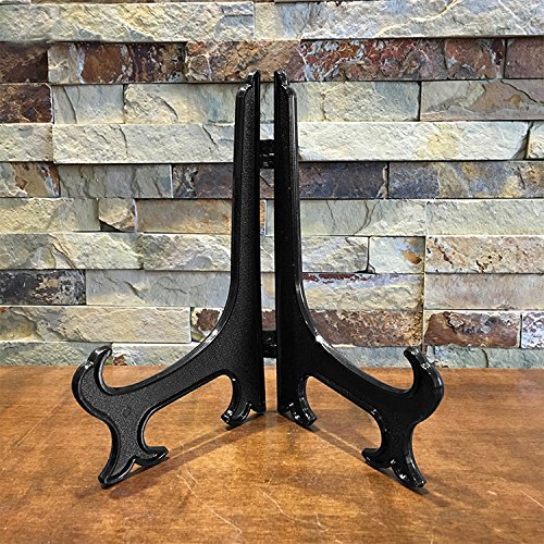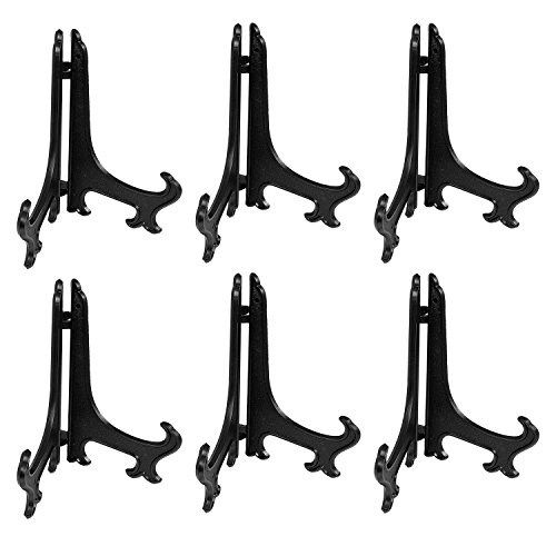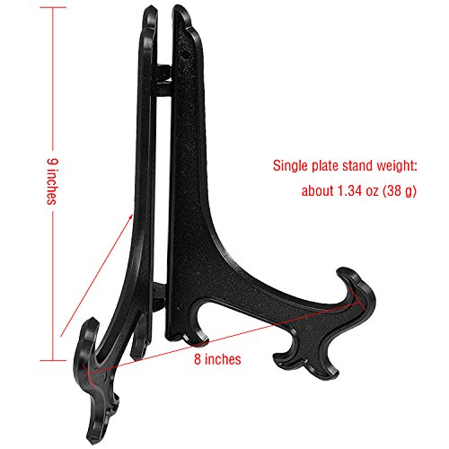 Shxstore 9 Inch Black Plastic Plate Stand Holder, Picture Easel, Display Easels For Collectibles, Photo, Dish, Book, 6 Counts