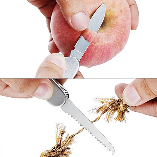 - ONE BUT MORE FUNCTION- It include cross screwdriver, sharp blade, small contusion sub,a packet of needle,the cork drill,bottle opener,the can opener scissors,fish scale scraping,pocket knife, saw