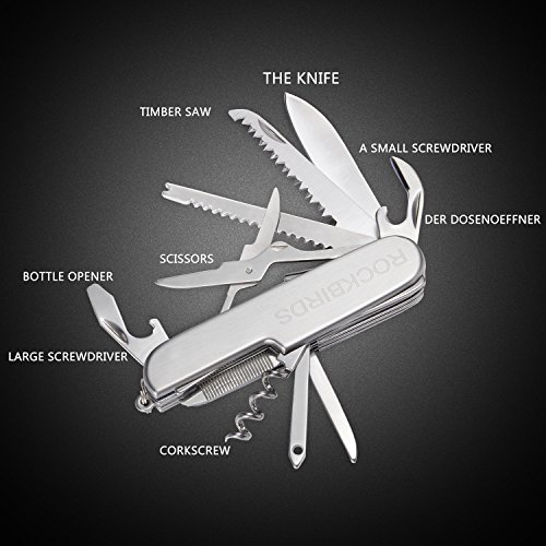 - EASY TO CARRY- Packed with 11 functions yet only 95mm long, you won't even know you're carrying the RockBirds Multi-Purpose tool knife until you need it