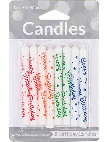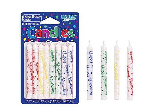 Birthday Candles 3.5" 8/Pkg-Assorted Happy Birthday