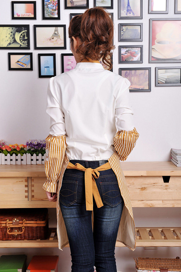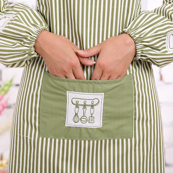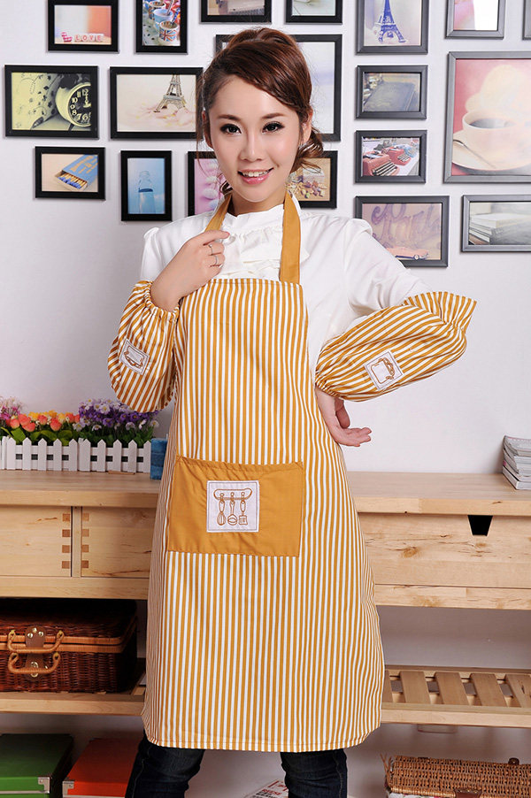 棉布条纹韩版布艺围裙 围裙+袖套 三件套围裙厨房围裙