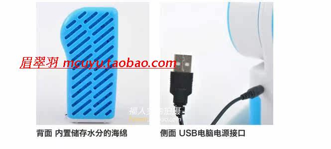 Equipped with a 60ml bottle, a connected USB computer line, and the water of a sponge block. Method of use is also very convenient: as long as the water bottles with water drops on the use of uniform water sponge.Just give it power, can work. Due to the use of the sponge is advancednano products, can be used for three or four years without replacement.Supermarkets are generally sold.