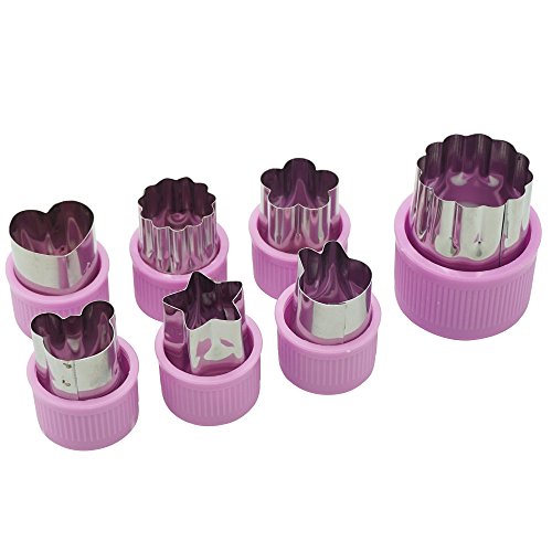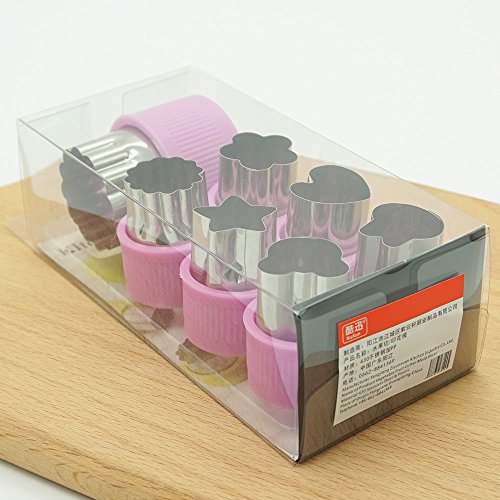 Package contains: 1 Set = 7 Piece Food Slicer =1 Large Cutters 6 Small Cutters Size: 1 Large One (Approx. 1.5 x 2 in /3.8 x 5.3 cm): Chrysanthemum; 6 Small Ones (Approx. 1 x 1.6 in/2.5 x 4 cm): Chrysanthemum, Mable leaf, Bunny Rabbit, Heart, Star, Mickey Mouse Packed Safely in PVC box !