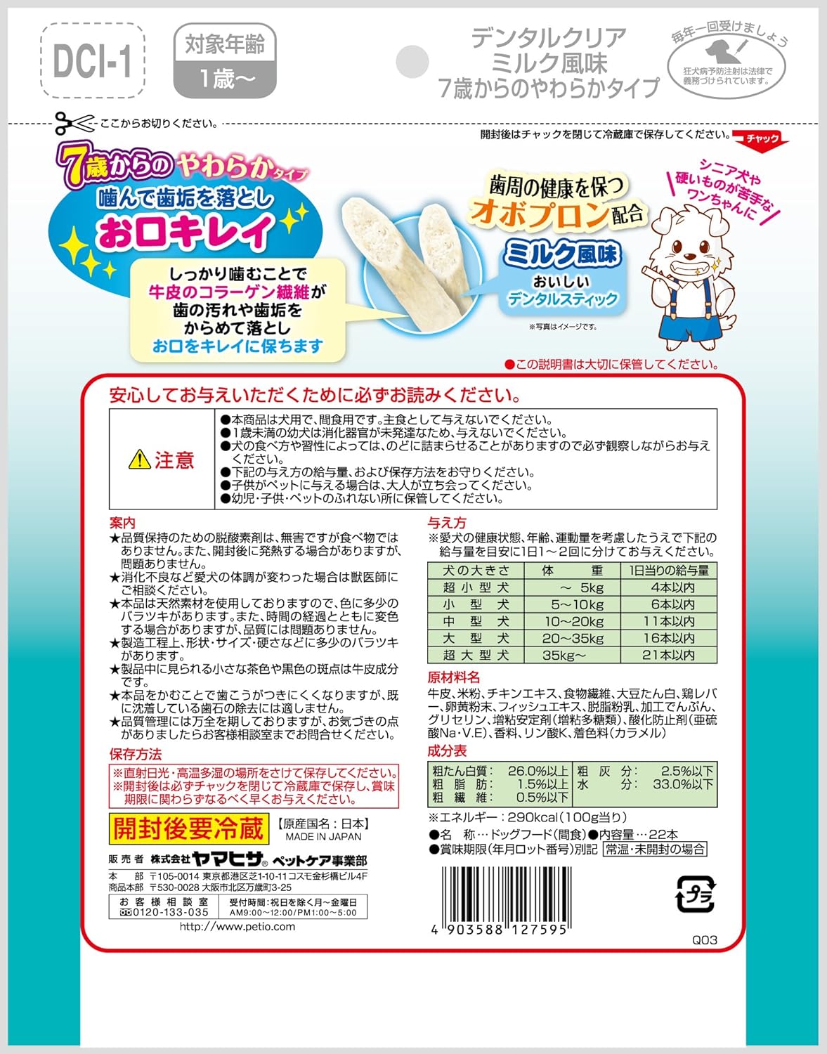 ●本商品は犬用で、間食用です。主食として与えないでください。●1歳未満の幼犬は消化器官が未発達なため、与えないでください。●犬の食べ方や習性によっては、のどに詰まらせることがありますので必ず観察しながらお与えください。●別記の与え方の給与量、および保存方法をお守りください。●子供がペットに与える場合は、大人が立ち会ってください。●幼児・子供・ペットのふれない所に保管してください。