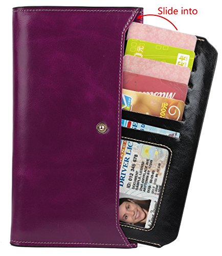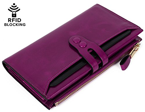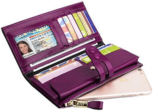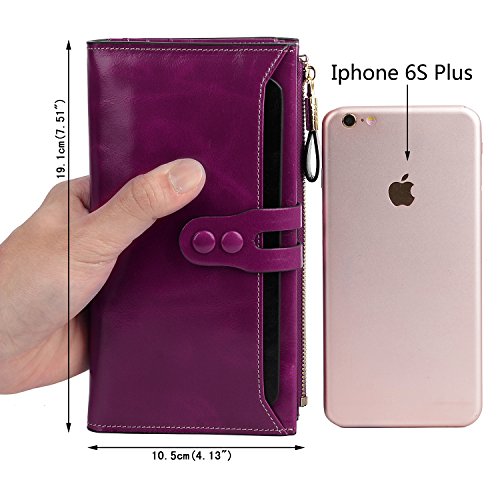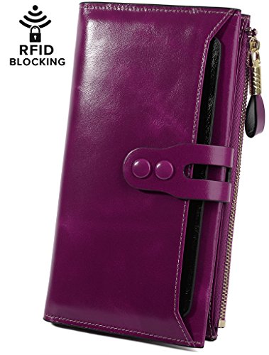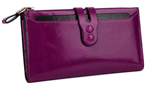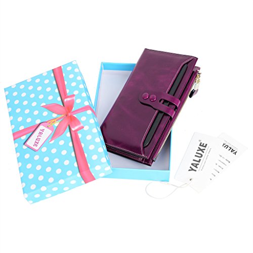 YALUXE Women's Large Capacity Luxury Waxy Genuine Leather Wallet with Zipper Pocket