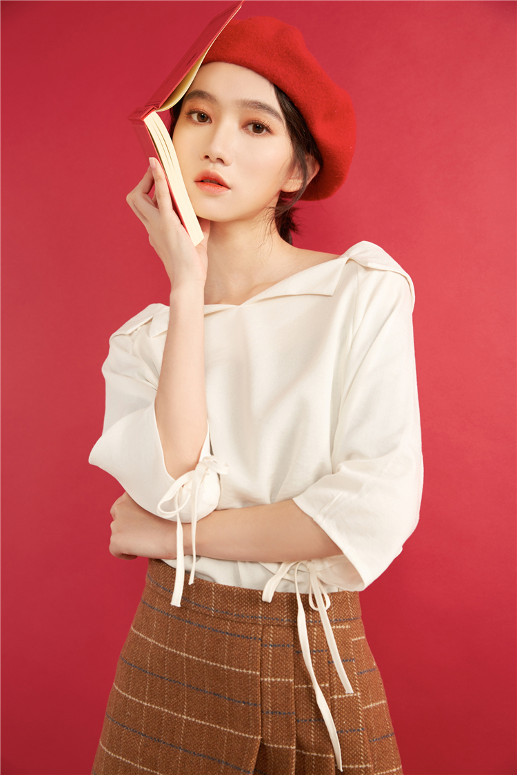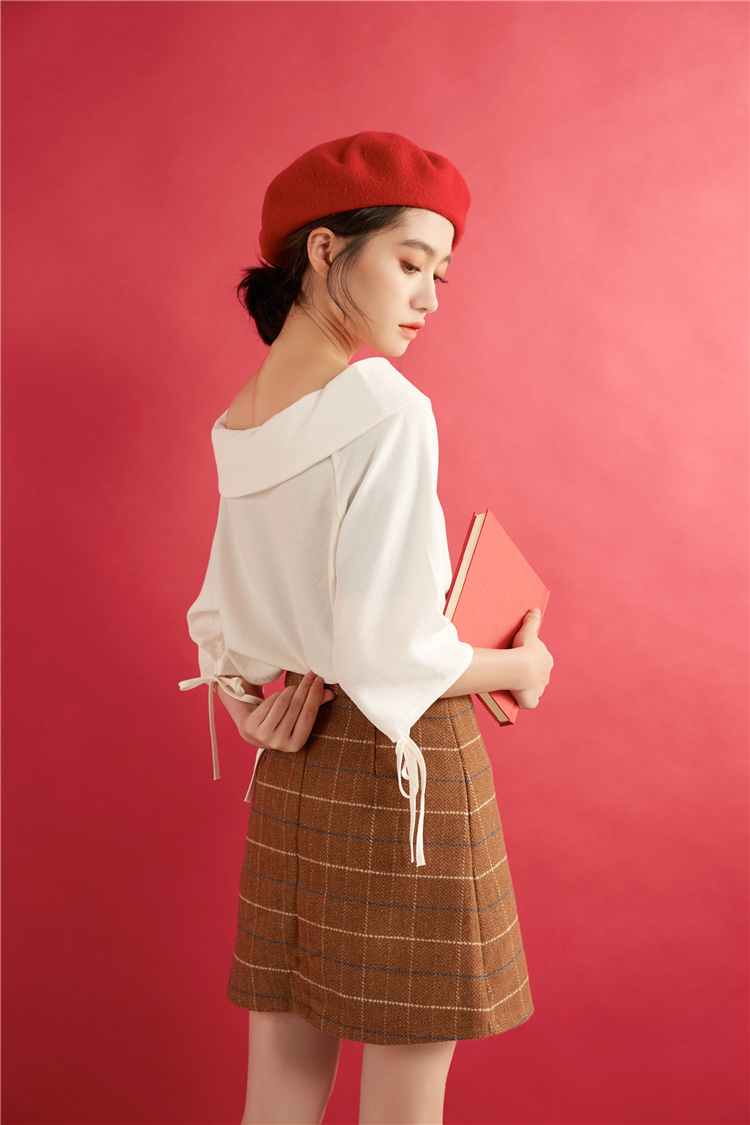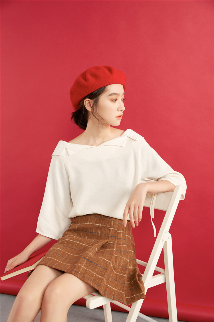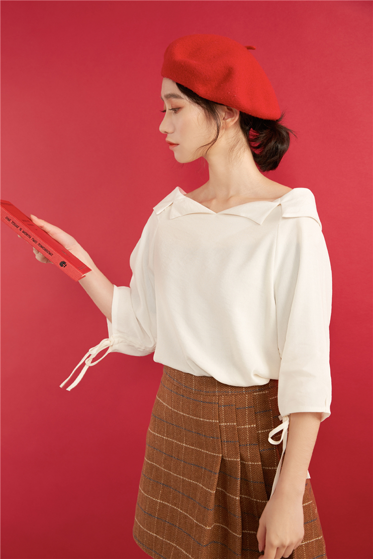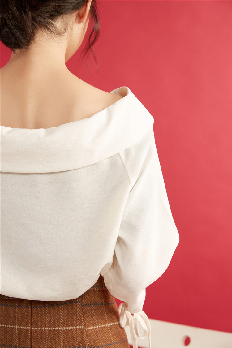 前後にしっかり開いた襟は大人っぽさを演出し、首元すっきり小顔効果抜群です。