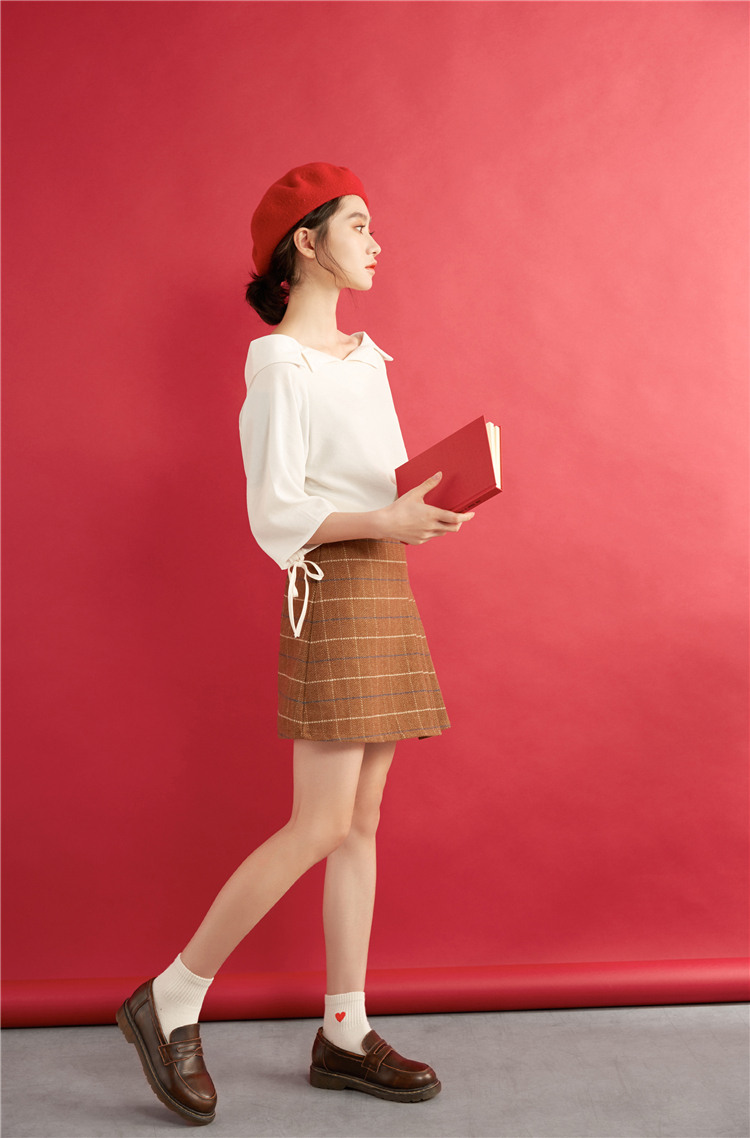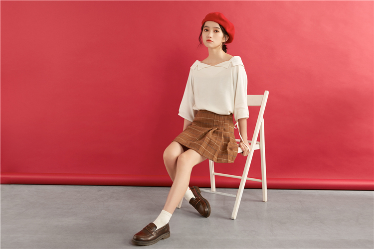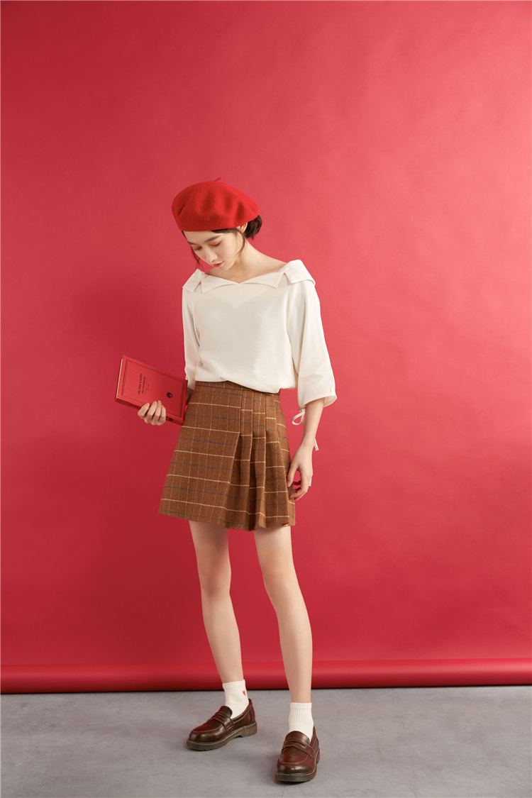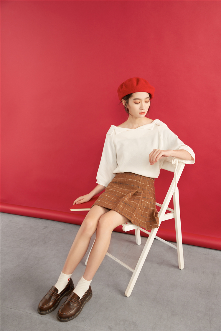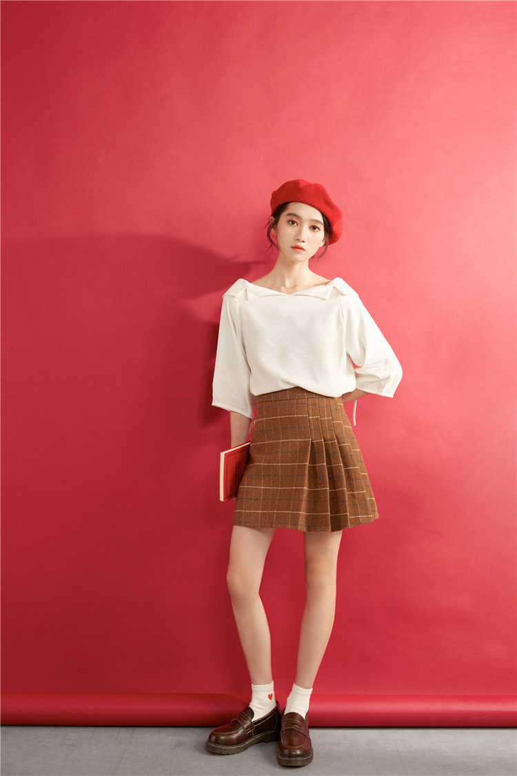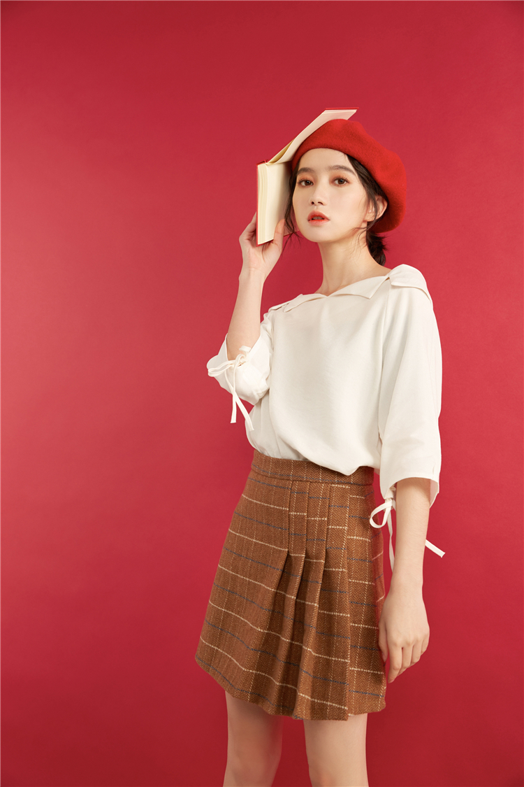 前後にしっかり開いた襟は大人っぽさを演出し、首元すっきり小顔効果抜群です。