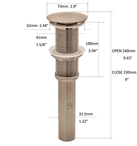 MYHB PU002BN Extended 1 5/8" Bathroom Vessel Sink Pop Up Drain Stopper Without Overflow, Brushed Nickel