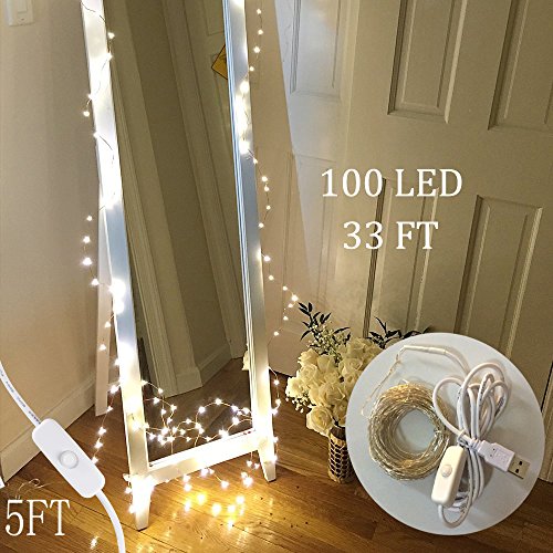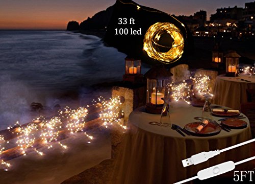 USB Led String Lights , AhomeStars 100LED 33FT Waterproof Fairy Light Starry Twinkle Strip Light Home Decorative ON/OFF Switch Rope Lighting for Bedroom Party Wedding Christmas Tree Indoor Outdoor