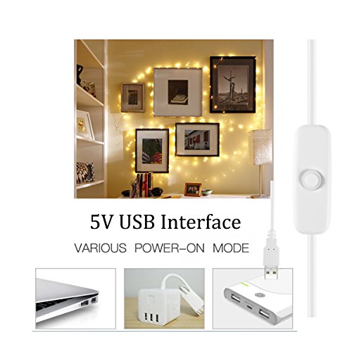 Fairy Twinkly String Lights come with 5FT Flexible USB Cable . One-button control to quickly turn on / off the lights , 5ft power lead can be placed in a convenient location, easy set up on anywhere .