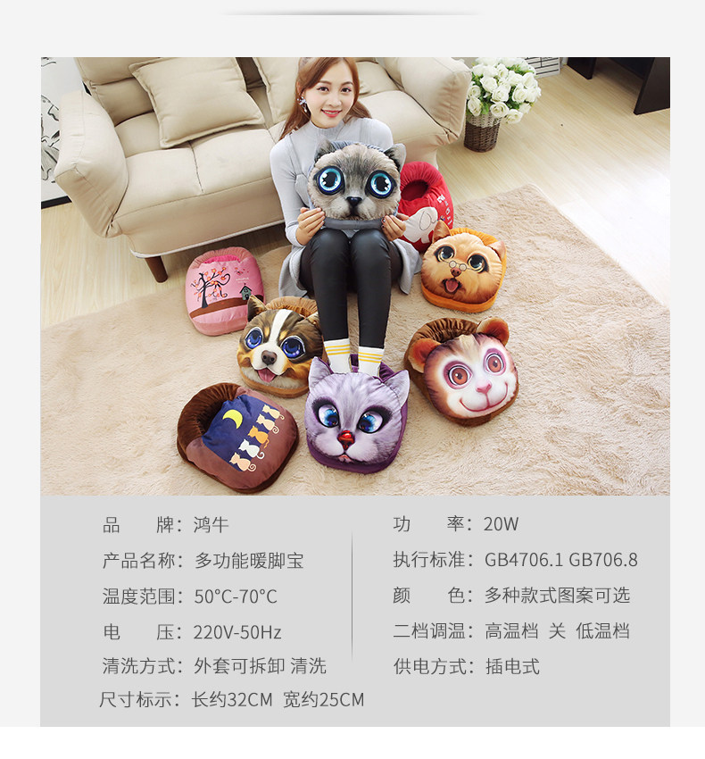 暖脚宝插电暖鞋女学生暖脚器加热暖脚垫办公室充电式卡通3D保暖鞋