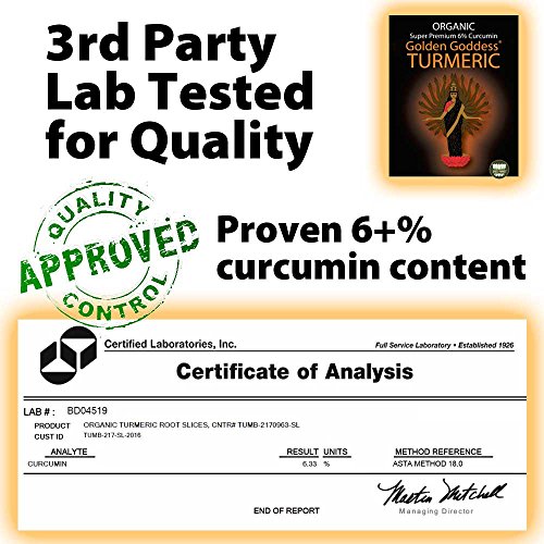 NEW! Organic Turmeric, Lab Tested 6+% Curcumin, Fair Trade Golden Goddess Brand from Spice Pharm Supports Farmers and Families